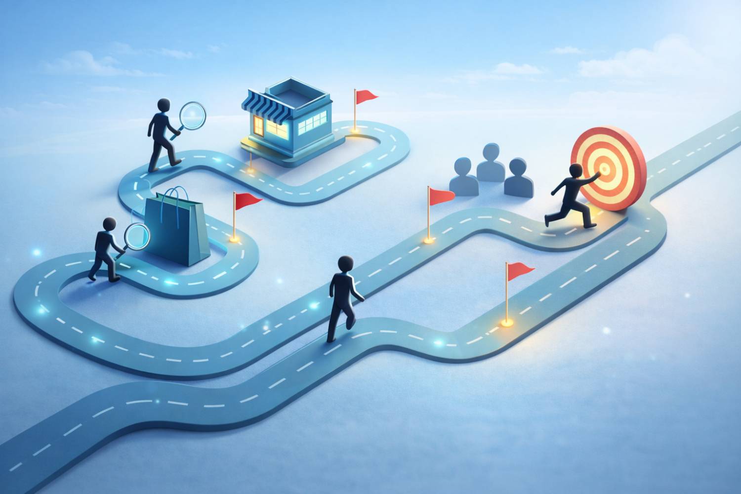 مراحل سفر مشتری: آگاهی، علاقهمندی، تصمیمگیری، خرید و وفاداری
