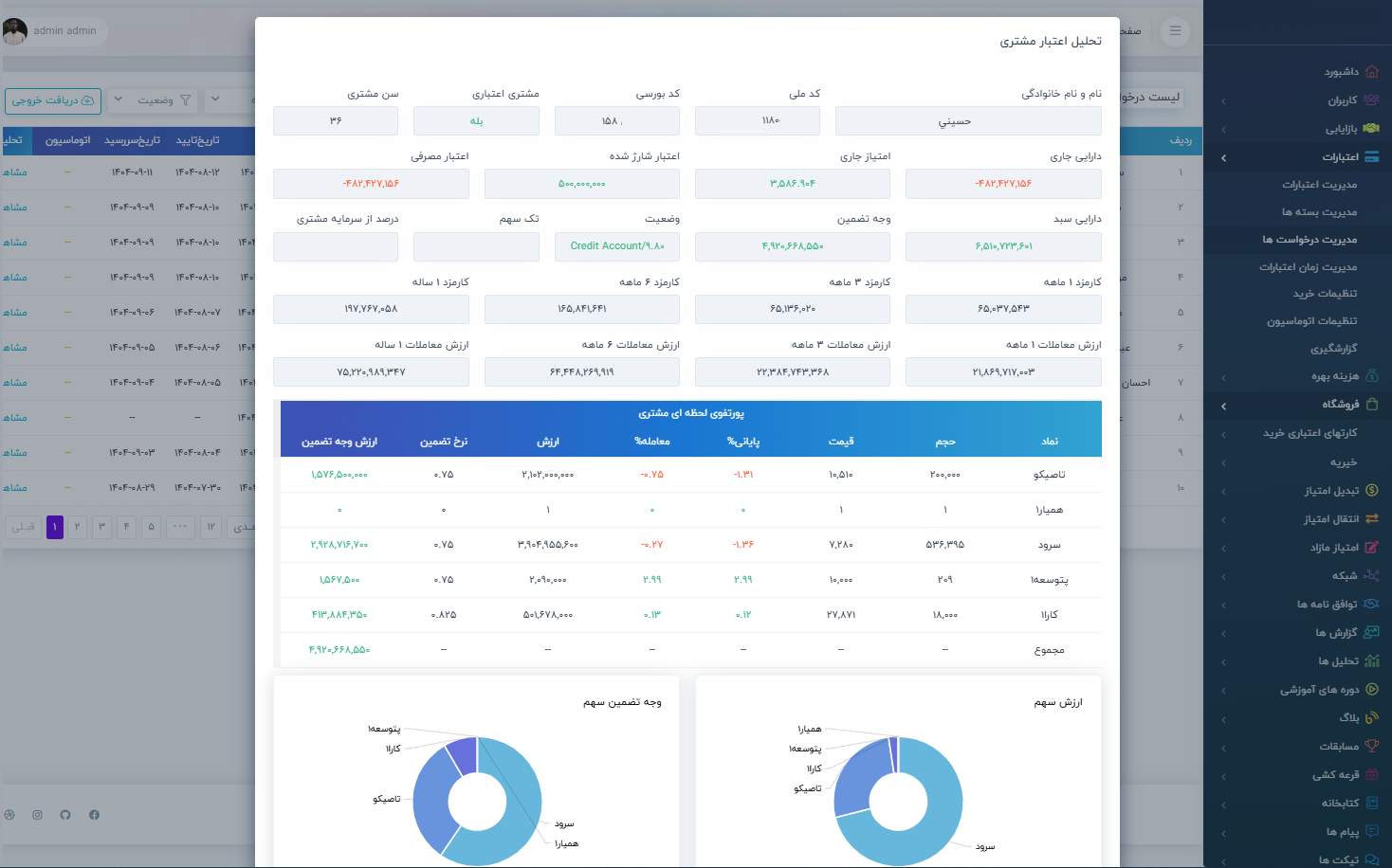 هر مشتری یک داشبورد اختصاصی دارد تا وضعیت اعتباری، پرتفوی و ماشینحسابهای خود را لحظهای مشاهده و مدیریت کند.